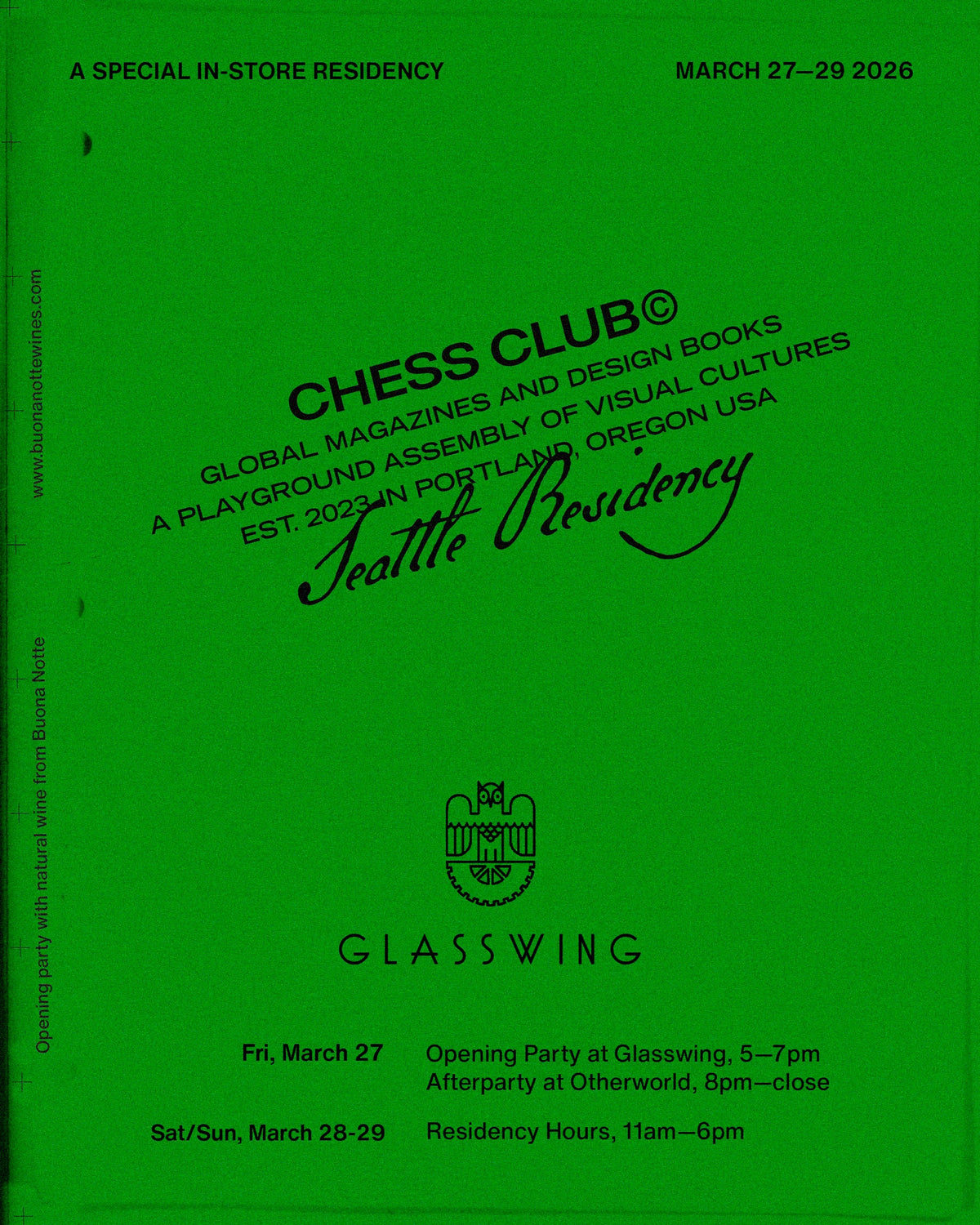 We’re hosting Chess Club, an independent publication shop from Portland, for a weekend residency at Glasswing.