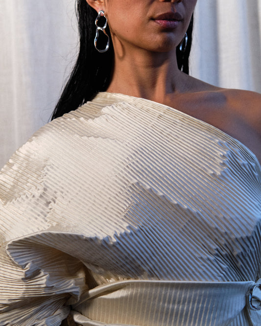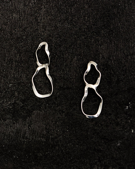 Ilona is inspired by the elements that make up our natural world—Water as a guiding reference, balanced with the forces of Earth, Air, and Fire. Each AGMES collection aims to create elevated modern forms anchored in the harmony, safety, and stillness that nature grounds us in. The Ilona pieces offer a subtle ripple of waves and their calming effect. Silhouettes of stacked metal with fluid, elastic movement create a visual continuity and flowing surface. details Handmade in NYC925 Sterling SilverMeasures 2.5" long