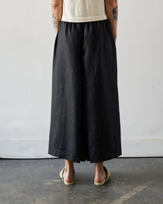 Cordera Skirt Linen Pants, Black