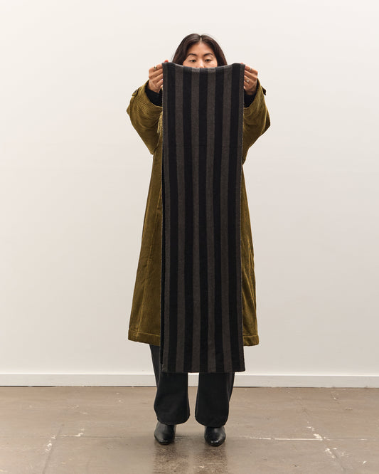 A classic, rectangular long scarf designed with vertical wide stripes. The length provides an adaptable and multifaceted use. A 100% merino wool with a lightly felted touch that is soft against the skin. Merino wool is highly breathable and moisture wicking, meaning you’ll stay comfortable regardless of the temperature. details Made in Dongguan, ChinaSmall Batch Production100% Extrafine MerinoHand wash