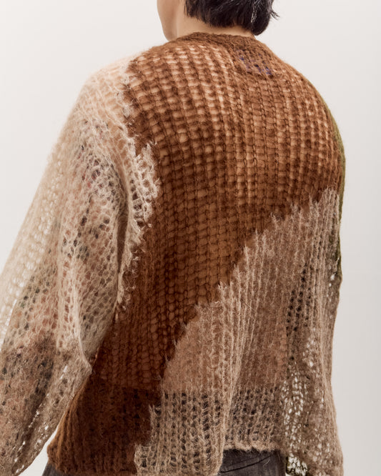A soft and fuzzy loose knit sweater with an enlarged camo-like pattern throughout. Designed with a loose silhouette through the body and sleeve, and shortened length. Finished with a rib knit crew neckline. fit Ellery is 6'0" and typically wears a large in tops. He is wearing the size Large here for a regular fit. details Made in Portugal89% Alpaca 11% Recycled PolyDry clean