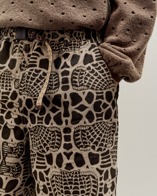 Baggy climbing short made from a natural and black skull printed cotton twill. Features side seam pockets, single back welt pocket, and waistband with adjustable custom Brain Dead belt. fit Ellery is 6'0" and typically wears a 32 in bottoms. He is wearing the size medium here for a regular fit. details Made in Portugal97% Cotton 3% SpandexWash Cold
