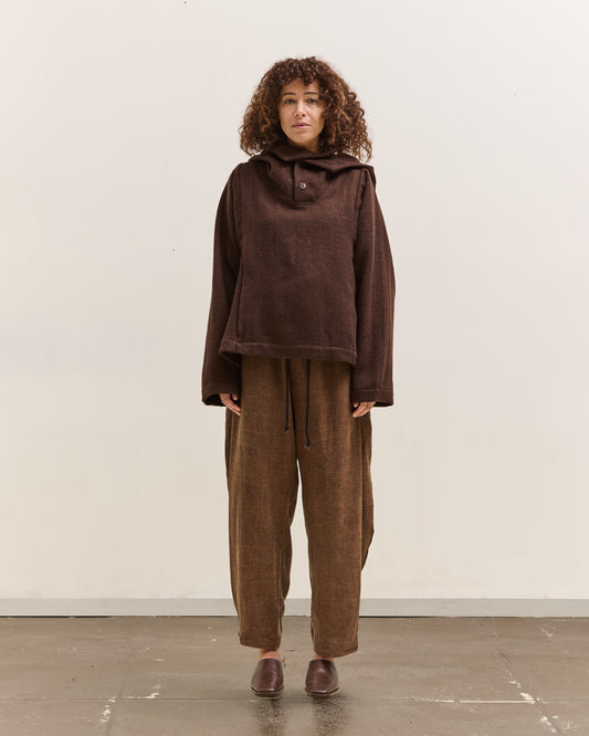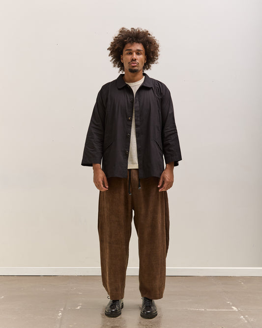 A fisherman pant with an easy, architectural shape cut in stonewashed Kojima denim and finished in a deep black tone. Featuring a relaxed leg with room through the top block, a clean waistband, and a soft broken-in feel from the stonewash process. The silhouette offers everyday versatility with a balanced drape that works well with both structured tops and lightweight knits. Finished with subtle fading, durable stitching, and a lived-in texture.