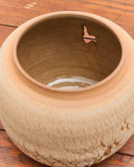 A hand-crafted ceramic piece made from reddish brown stoneware with a raw outer surface, featuring a subtle texture and white slip detailing, lined with a clear interior. Piece cannot hold water due to openings. Has been marked with the artist’s stamp. ABOUT THE ARTIST Alex Roby is a multidisciplinary artist, working primarily with clay to explore imperfection, sustainability, and connection to the natural world. Her work invites reflection on presence, material, and the quiet beauty of the handmade. SHIPPING NOTICE Due to the delicate nature of handmade ceramics, all art pieces shipped are final sale. Please contact us if you have questions about the piece before purchasing. DETAILS Made in WashingtonCeramic6.5” tall x 7” diameter