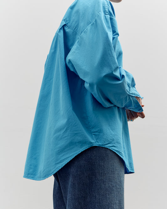 A long sleeve button up with an oversized fit that's slightly longer through the body. Inspired by an artist's go-to choice for working, this shirt has a roomy fit through the body, flat hem and with one small chest pocket. Finished with classic french seams, and garment washed for a soft hand. fit Kass is 5'9" and typically wears a size small in tops. She's wearing the size XS/S here for a regular fit. details Made in California100% Deadstock CottonWash Cold, Hang Dry
