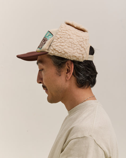 Kapital Denim Repair Service Lumber Trucker Cap, Ecrxbrwn Kapital Denim Repair Service Lumber Trucker Cap, Ecrxbrwn
