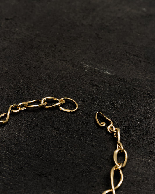 A gold plated brass necklace shaped with a softly sculptural pendant that rests with subtle presence along the collarbone. Featuring a smooth, high polish finish and balanced proportions, it offers warmth and quiet dimension without excess. Wear it alone as a refined focal point or layered with finer chains for contrast. Finished with an adjustable clasp for everyday versatility. material Heavy plated 14K gold over brass with a substantial layer designed for durability and longevity. The warm brass base makes natural wear less noticeable over time. details Made in VancouverGold Plated BrassAdjustable chainSpring ring clasp