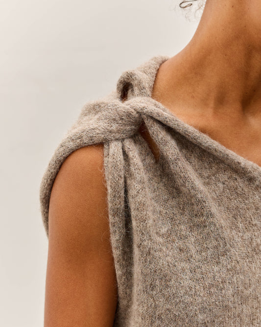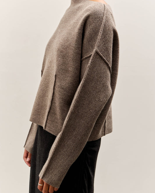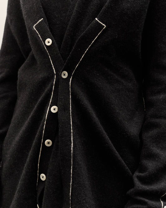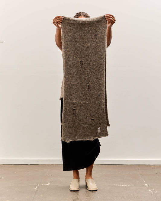 A long pant cut with a wide silhouette, high rise fit and front pleat detail for a voluminous leg. Constructed with a medium weight cotton treated with a hand dyed affect for a beautifully irregular antique tone. Finished with a button waist fastening, side seam pockets, elastic drawstring waistband, and back welt pocket.