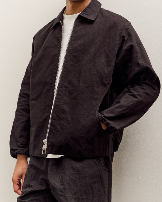 A loose fitting track Jacket in an ultra-lightweight, water-resistant outerwear garment with a high stand-collar that can be rolled down. Made from a lightweight nylon fabric, water resistant with a high-density plain weave. Woven in Fukui, Japan. Featuring bound pocket openings, bar-tacks to secure the front facing and a double-ended zipper. fit Himi is 6'0" and typically wears a size L in tops. He's wearing the size L here for a regular fit. details Made in Japan100% nylonHand wash cold, lay flat to dry