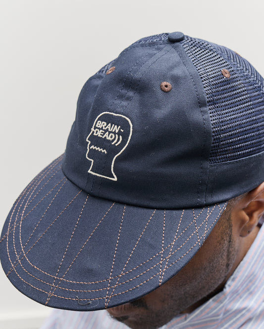 Brain Dead Logohead Long Brim Mesh Panel Hat , Navy