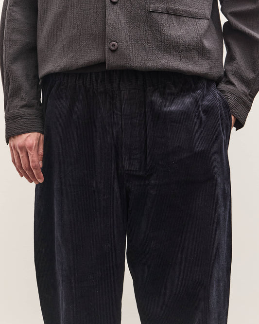 A favorite unisex pant with an easy, pull-on elastic waistband. These trousers feature a generous fit through the leg, with a subtle rounded silhouette that tapers slightly at the hem. Cut from a soft and rigid standard corduroy fabric. Finished with a clean button fly, front side pockets and a single back pocket. FIT Trevor is 5'11" and typically wears a size 34 in bottoms. He's wearing the size L here for a regular fit. APPROXIMATE SIZING XXS: Waist: 25"- 29", Hip: 40", Rise: 11", In-seam: 27"XS: Waist: 26” – 30”, Hip: 41”, Rise: 11.5”, In-seam: 27"S: Waist: 27” – 31”, Hip: 42”, Rise: 12”, In-seam: 27"M: Waist: 29” – 33”, Hip: 43”, Rise: 12.5”, In-seam: 27"L: Waist: 30” – 34”, Hip: 45”, Rise: 13”, In-seam: 27"XL: Waist: 32” – 36”, Hip: 47”, Rise: 13.5”, In-seam: 27 DETAILS Made in small batch in Guangzhou City, China100% CottonHand wash cold or Dry clean