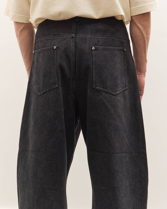 Designed with an exaggerated curved leg silhouette, the pronounced and unique shape is flattering and distinct. Cut from a sand-washed cotton canvas with a firm and smooth handfeel. Features a button zip fly closure, side seam pockets, belt loops, and single pleat at the front. Also available in Washed Black. FIT Trevor is 5'11 and typically wears a size 32 in bottoms. He's wearing the size L here for a fit that sit higher on the waist. This trouser features a fixed waistband that offers minimal stretch in the waist and hips – we recommend referring to the measurements below as a guide when choosing your ideal size and fit. If between sizes, there are belt loops to secure the waist to the desired area of wear. Graded in gender-neutral sizing, the size XS is comparable to a standard women's size S. APPROXIMATE SIZING XXS - Waist: 24", Hip: 38", Rise: 14", In-seam: 26"XS - Waist: 26", Hip: 40", Rise: 14.5", In-seam: 26"S - Waist: 28", Hip: 42", Rise: 15", In-seam: 26"M - Waist: 30", Hip: 44", Rise: 15.5", In-seam: 26"L - Waist: 31", Hip: 46", Rise: 16", In-seam: 26"XL - Waist: 32", Hip: 48", Rise: 16.5", In-seam: 26" DETAILS Made in small batch in Guangzhou City, China100% CottonHand wash cold and lay flat to dry