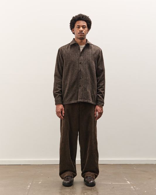 A flat front trouser with a relaxed, straight leg cut and slightly higher rise. Featuring side seam pockets, rear welt pockets, and belt loops at the waistband. Cut from a medium weight corduroy blending cotton and linen, woven in Wakayama, Japan, and cut in Shizuoka by one of the last remaining corduroy cutters in Japan. The fabric has a slightly dry hand and irregular texture, piece dyed with natural sumi ink and Oeko-Tex certified dye in Okayama. Finished with corozo buttons and a clean blind hem. fit Chukwuma is 6'2" and typically wears a size 32" in bottoms. He's wearing the size 32" here for a regular fit. measurements 28: Waist 15.75", Outseam 40.5", Knee 13.5", Hem 10"30: Waist 16.75", Outseam 41.25", Knee 14", Hem 10.25"32: Waist 17.5", Outseam 42.5", Knee 14.5", Hem 10.5"34: Waist 18.5", Outseam 43.5", Knee 15.25", Hem 10.75"36: Waist 20", Outseam 44.5", Knee 16", Hem 11" details Made in San Francisco55% Cotton, 45% LinenHand or delicate machine wash cold, hang dry