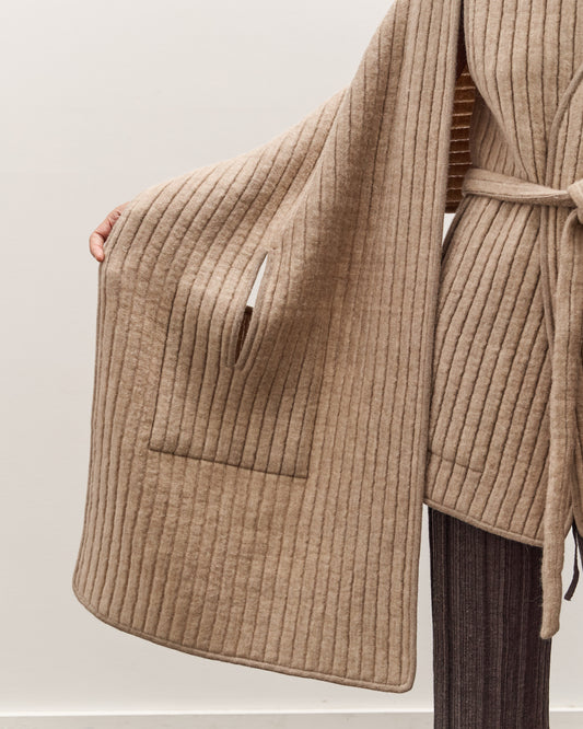 The Tami Stole has an open, relaxed silhouette constructed from a layered puffed quilted knit with a lofty touch. It features integral pockets, accessible from the interior and exterior. Finished with a clean binding throughout. fit Kass is 5'9" and typically wears a size S/M in tops. This style is one size. details Made in Peru55% Super Baby Alpaca 17% Mulberry Silk 13% Fine Merino Wool6% Alpaca 6% Pima Cotton 3% Fine Highland Wool Dry Clean