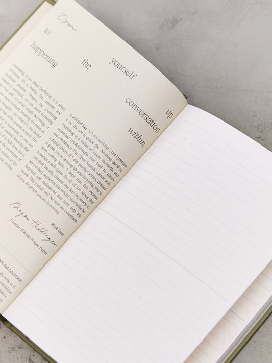 A lined journal designed to inspire you to actually journal by supporting you with our free library of digital journaling courses. Designed with a durable protective sleeve to keep your journal safe on the go. 5.70" × 8.26" • 176 lined inner pages • PCW recycled paper