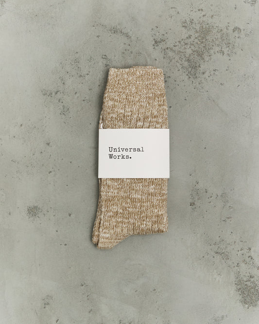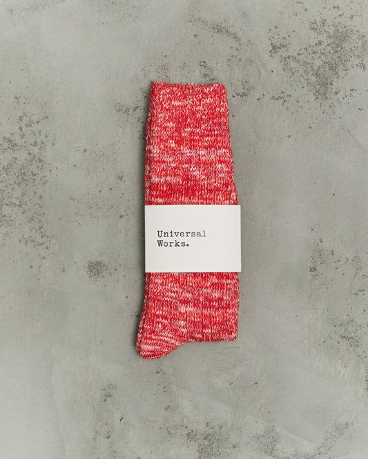 A textured everyday sock from Kapital knit with their signature 84 yarns, creating a soft mole-like pile that feels plush and warm against the skin. Featuring a sashiko inspired pattern woven into the surface, an homage to traditional Japanese mending techniques that adds dimension and visual rhythm. The knit has a comfortable stretch and a cushioned feel, making it suitable for daily wear across seasons. Finished with a reinforced toe and heel and Kapital’s playful approach to functional accessories.