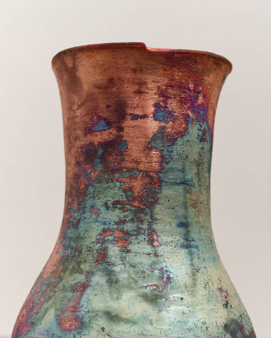 A loose fitting shirt designed with a slight dropped shoulder and curved back hemline. Cut from lightweight washed cotton shirting in a naturally vegetable dyed faded orange brown. Due to the nature of natural dye, each shirt varies slightly in appearance. Natural dyes may alter over time through wear, washing, and exposure to sunlight, evolving with its wearer. Shirt is detailed with a classic collar, left chest pocket, single button cuffs, and a shirred back panel just below the yoke.