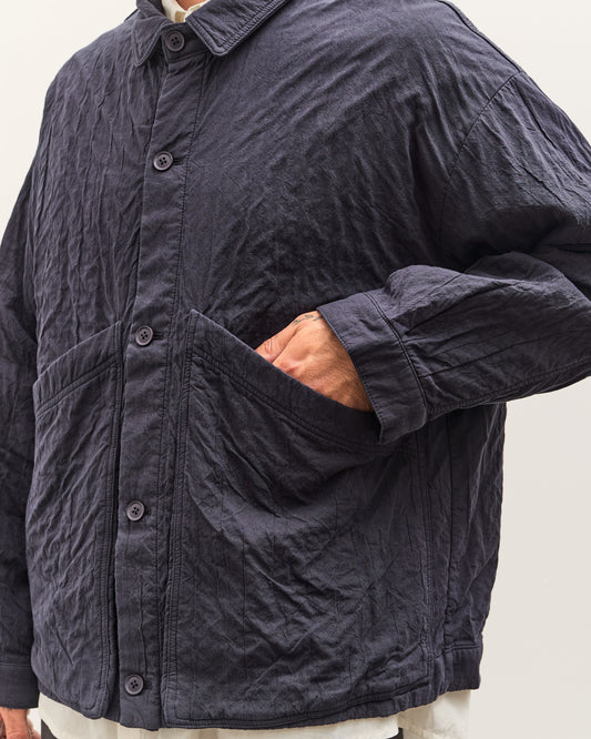 A utilitarian shirt jacket with a versatile design that layers easily over shirts or knits. Featuring a spread collar, button placket, and two oversized gusseted panel pockets for functionality and structure. Finished with clean lines, a straight hem, and durable topstitching. Cut from a textured midweight linen cotton blend that offers breathability with a subtle drape. fit Dane is 6’0” and typically wears a size Large in tops. He wears the size Large here for a regular fit. measurements XS: bust 44", shoulder 21", sleeve 31", length 25"S: bust 46", shoulder 21.5", sleeve 31.5", length 26"M: bust 48", shoulder 22.5", sleeve 33", length 27"L: bust 50", shoulder 23", sleeve 34", length 27.5" details Made in Guangzhou, ChinaSmall Batch Production55% Linen, 45% CottonDry clean recommended. Can be hand washed cold. Wash separately, lay flat to dry. Do not tumble dry