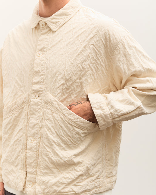 A versatile over-shirt with a boxy, relaxed profile that layers effortlessly. Featuring a structured flat hem for clean lines, precise double-needle topstitching, and a single chest flap pocket integrated into the front panel for added durability. Finished with a front button closure, buttoned cuffs, and generous volume for ease of movement. Cut from a textured, lightly crinkled cotton-spandex blend that offers structured drape with subtle stretch. Also available in Kelp. fit Dane is 6’0” and typically wears a size Large in tops. He wears the size Large here for a regular fit. measurements XS: bust 44", shoulder 20", sleeve 31.5", front length 24", back length 26"S: bust 46", shoulder 20.5", sleeve 32.5", front length 25", back length 27.5"M: bust 48", shoulder 21", sleeve 33.5", front length 25.5", back length 28"L: bust 49", shoulder 21.5", sleeve 34", front length 26.5", back length 28.5"XL: bust 51", shoulder 22", sleeve 35.5", front length 27.5", back length 29.5" details Made in Guangzhou, ChinaSmall Batch Production99% Cotton, 1% SpandexMachine Wash Cold