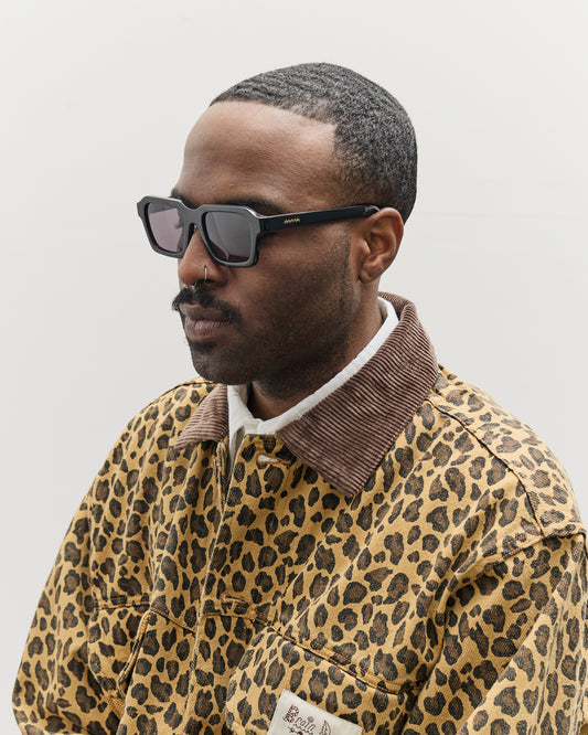 Sunglasses in a rounded rectangular shape with a bold thickness, handmade from an eco friendly cellulose acetate, cotton and wood blend that is sustainably sourced and biodegradable. Finished with stainless steel cores for strength and flexibility paired with extra sturdy and durable zinc-free barrel hinges. Optical-quality nylon lenses with 100% UV protection. Unisex. Also available in Brown Tortoise. details Made in ChinaBrain Dead case and cloth includedLens width - 53 mm Bridge width - 20 mm Temple length - 150 mm