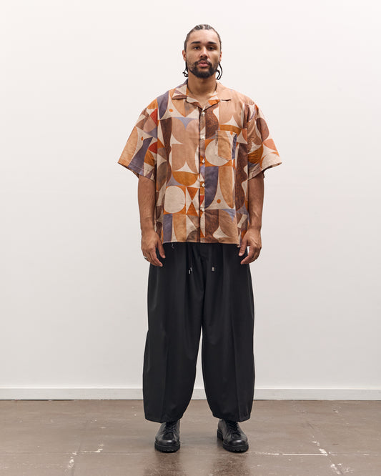 A short sleeve re engineered overshirt from Sillage, created in collaboration with New Zealand artist Aaron Glasson and printed with his geometry rooted visual language. Featuring an oversized one size silhouette with dropped shoulders, generous body width, and a longer shirt length for easy layering. Worn as a light outer layer over a tee, or buttoned up as a statement shirt. Finished with a clean open collar and a bold all over print. fit Jaden is 6'5" and typically wears an XL in tops. This is a unisex one size style designed to fit a wide range of bodies and works comfortably on sizes XS through XL. measurements One size, length 32.25", shoulder 12.25", chest 33.5", sleeve 11.5" details Made in Japan100% CottonHand Wash or Machine Wash Cold