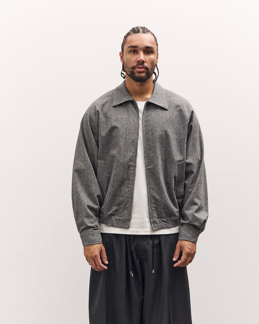 A short zip up blouson crafted from vintage deadstock fabric, selected from the 1980s through the early 2000s and chosen for its rarity and character. This fabric is a 1990s development by the British company Moon, originally made for Paul Smith, with a richly expressive texture and a structured hand feel. Inspired by vintage jackets of the 1980s, the silhouette features a fitted ribbed hem balanced by a relaxed body and broad shoulders, capturing the proportions of classic 80s outerwear. Finished with a front zip closure and a cropped blouson length. fit Jaden is 6'5" and typically wears an XL in tops. This is a unisex one size style designed to fit a wide range of bodies and works comfortably on sizes XS through XL. measurements One size, width 31.5", length 26.75", sleeve 32.75", hem width 20.75" details Made in Japan100% WoolFollow care label