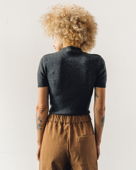 7115 Short-Sleeve Mockneck Top, Charcoal