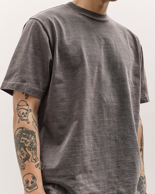 A boxy, heavyweight rugby t-shirt cut with a high set in collar and wide proportions through the chest and shoulders for a structured, relaxed shape. Featuring a custom 10oz jersey in US cotton with a smooth face and a firm drape that softens with wear while still holding its silhouette. Easy as a stand alone top or as a base layer under a jacket when you want weight without bulk. Finished with a high neckline, clean hems, and a preshrunk finish, with pigment dye that creates natural variation in tone and depth. fit Ellery is 6'0" and typically wears a size Medium or Large in tops. He's wearing the size Large here for the intended wide, boxy fit. Take your normal size. measurements Small, length 21", shoulder 18", chest 26", sleeve 9 1/4"Medium, length 22", shoulder 18 1/2", chest 27", sleeve 9 1/4"Large, length 23", shoulder 19", chest 28", sleeve 9 3/4"Extra Large, length 24 1/2", shoulder 19 1/2", chest 28 1/2", sleeve 9 3/4" details Made in USA100% CottonWash cold inside out, wash alone before wear, lay flat to dry or low tumble dry