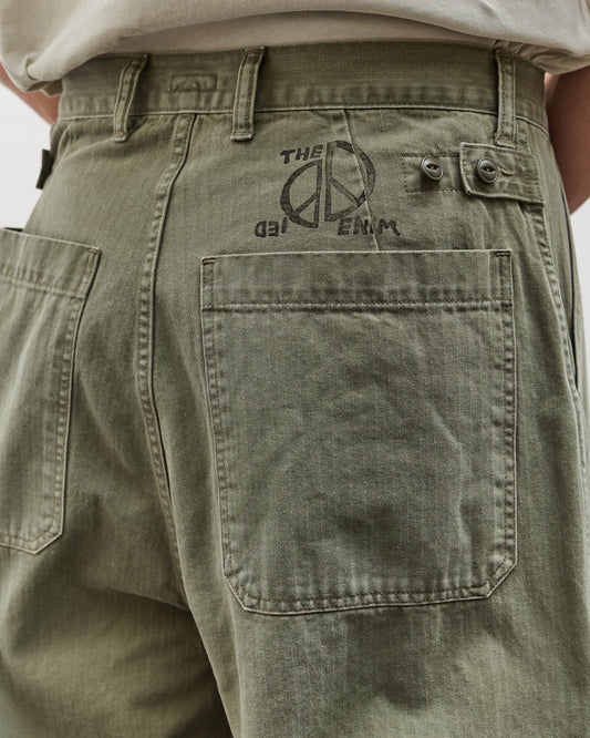 Kapital Herringbone FATIGUE Baggy Pants Unisex, Khaki Kapital Herringbone FATIGUE Baggy Pants Unisex, Khaki