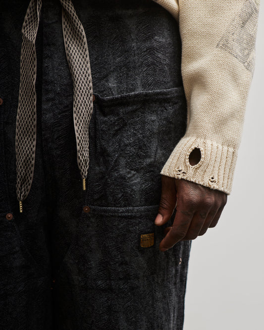 Kapital Unisex 12oz MAGPIE Denim W-Knee Easy Baggy Pants, BLKxBLK Kapital Unisex 12oz MAGPIE Denim W-Knee Easy Baggy Pants, BLKxBLK