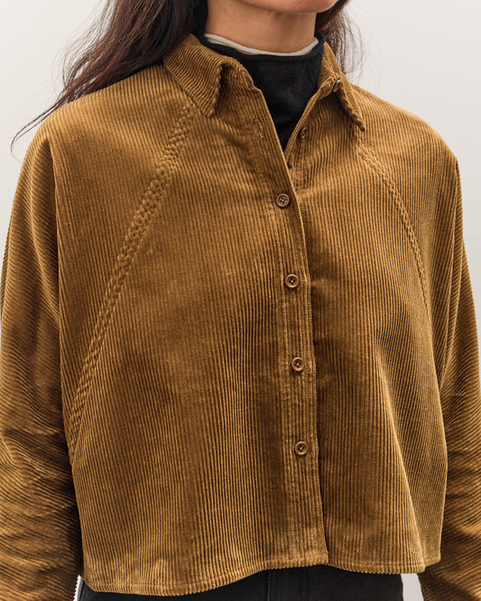A thoughtfully tailored button up shirt jacket. Features a generously boxy fit, cropped length, dolman sleeves and a front button placket. Made from a standard wale cotton corduroy with a soft ridged surface. Durable and breathable, perfect for day-to-day wear and transitional seasons. Details include paneled construction and subtle pleating detail along the hem. Features a generous cut so the shirt can be worn unbuttoned as a jacket. Also available in Sepia Brown. FIT Cara is 5'7" and typically wears a size S in tops. She's wearing a size S here for a boxy, comfortable fit that's slightly cropped. Running true to size. APPROXIMATE MEASUREMENTS XS - Bust: 48", Sleeves: 29.5", Length: 18"S - Bust: 49", Sleeves: 30.5", Length: 18.5"M - Bust: 51", Sleeves: 31", Length: 19"L - Bust: 52", Sleeves: 32", Length: 19.5" details Made in Small Batches in Guangzhou City, China.100% CottonHand wash cold, hang or lay flat to dry