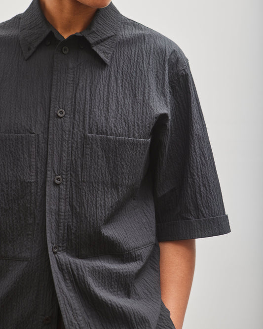 A casual short sleeve shirt cut with an intentionally oversized fit. Made from a lightweight and airy cotton fabric that features a textured and lightly crinkled finish. Breathable, comfortable, and odor resistant. Features two large patch pockets on the chest, a button-down collar, slighter longer sleeves, and a curved hem. fit Kass is 5'9" and typically wears an S in tops and is wearing the size XS here. This is a unisex style listed in mens sizing. The size XS is equivalent to a women's size S. XS - Bust: 44", Shoulder: 17", Length: 31.5"S - Bust: 46", Shoulder: 17.5", Length: 32"M - Bust: 48", Shoulder: 18", Length: 32.5"L - Bust: 50", Shoulder: 18.5", Length: 33"XL - Bust: 52", Shoulder: 19", Length: 33.5 details Made in small batch in Guangzhou City, China99% Cotton 1% SpandexHand or Machine Wash Cold