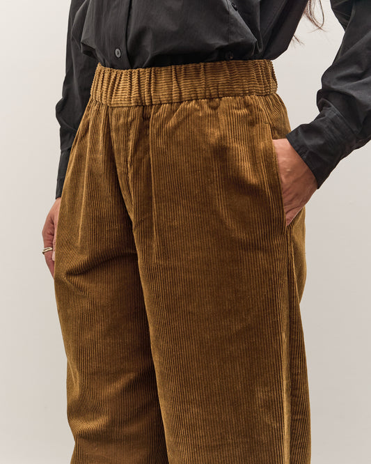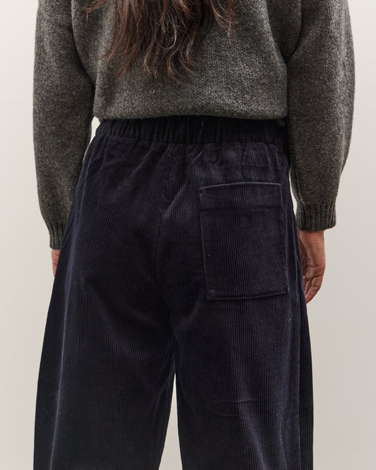 A favorite unisex pant with an easy, pull-on elastic waistband. These trousers feature a generous fit through the leg, with a subtle rounded silhouette that tapers slightly at the hem. Cut from a soft and rigid standard corduroy fabric. Finished with a clean button fly, front side pockets and a single back pocket. FIT Cara is 5'7" and typically wears a size 26 in bottoms. She's wearing the size XS here for a high rise fit. APPROXIMATE SIZING XXS: Waist: 25"- 29", Hip: 40", Rise: 11", In-seam: 27"XS: Waist: 26” – 30”, Hip: 41”, Rise: 11.5”, In-seam: 27"S: Waist: 27” – 31”, Hip: 42”, Rise: 12”, In-seam: 27"M: Waist: 29” – 33”, Hip: 43”, Rise: 12.5”, In-seam: 27"L: Waist: 30” – 34”, Hip: 45”, Rise: 13”, In-seam: 27"XL: Waist: 32” – 36”, Hip: 47”, Rise: 13.5”, In-seam: 27 DETAILS Made in small batch in Guangzhou City, China100% CottonHand wash cold or Dry clean