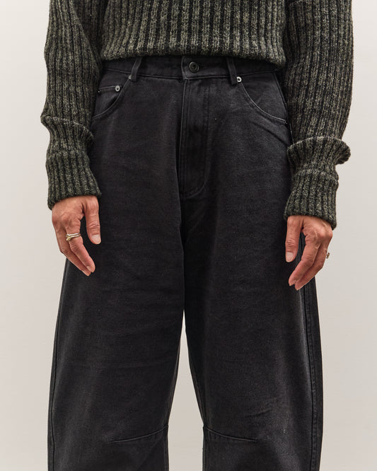 Designed with an exaggerated curved leg silhouette, the pronounced and unique shape is flattering and distinct. Cut from a sand-washed cotton canvas with a firm and smooth handfeel. Features a button zip fly closure, side seam pockets, belt loops, and single pleat at the front. Also available in Washed Black. FIT Cara is 5'7 and typically wears a size 26 in bottoms. She's wearing the size XS here for a fit that sit higher on the waist. This trouser features a fixed waistband that offers minimal stretch in the waist and hips – we recommend referring to the measurements below as a guide when choosing your ideal size and fit. If between sizes, there are belt loops to secure the waist to the desired area of wear. Graded in gender-neutral sizing, the size XS is comparable to a standard women's size S. APPROXIMATE SIZING XXS - Waist: 24", Hip: 38", Rise: 14", In-seam: 26"XS - Waist: 26", Hip: 40", Rise: 14.5", In-seam: 26"S - Waist: 28", Hip: 42", Rise: 15", In-seam: 26"M - Waist: 30", Hip: 44", Rise: 15.5", In-seam: 26"L - Waist: 31", Hip: 46", Rise: 16", In-seam: 26"XL - Waist: 32", Hip: 48", Rise: 16.5", In-seam: 26" DETAILS Made in small batch in Guangzhou City, China100% CottonHand wash cold and lay flat to dry