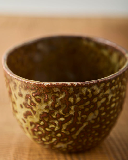 A tumbler, hand-built with an organic, slightly irregular shape and featuring a unique glaze inspired by nature's palatte. The wood-fired finish creates depth and unpredictable color variety in the glaze. Well-suited for dinnerware or used as a decorative object. This is a one of a kind design. SHIPPING NOTICE Due to the delicate nature of handmade ceramics, all art pieces shipped are final sale. Please contact us if you have questions about the piece before purchasing. DETAILS Handmade on Orcas Island, WACeramic~ 3.25” W x 3.5” H