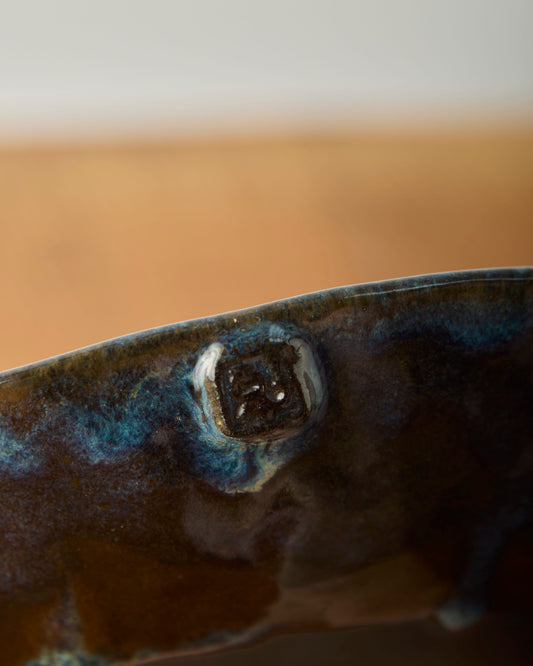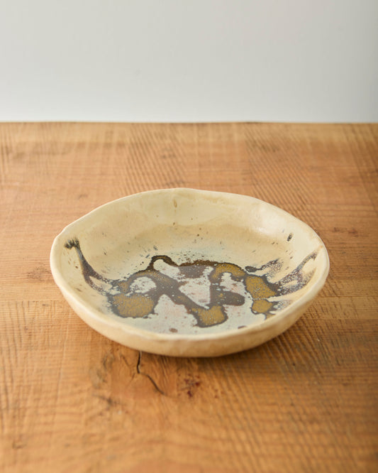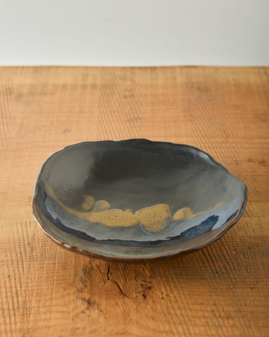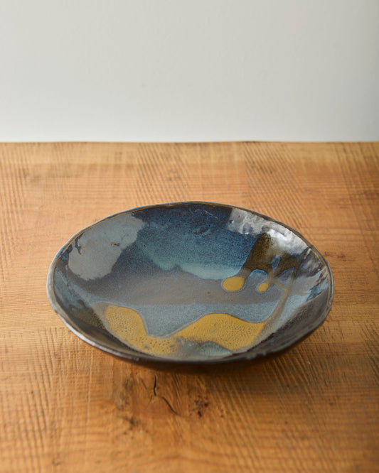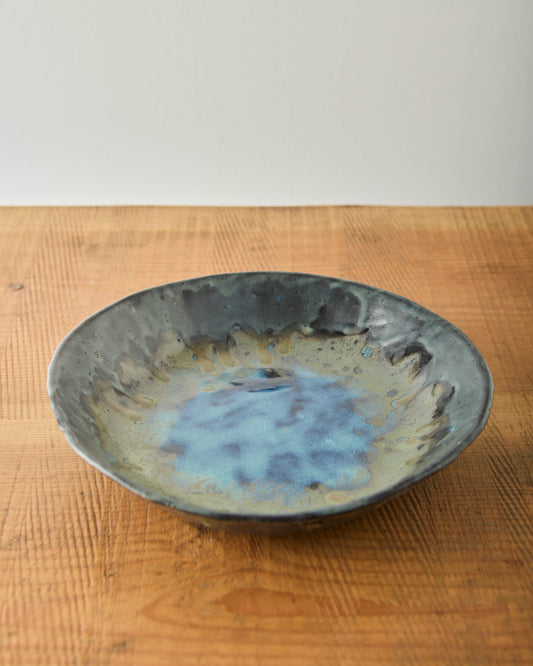 A circular bowl, hand-built with organic edges and shape. Featuring an unique glazing design inspired by nature's topography. Well-suited for dinnerware or used as a decorative object. This is a one of a kind design. SHIPPING NOTICE Due to the delicate nature of handmade ceramics, all art pieces shipped are final sale. Please contact us if you have questions about the piece before purchasing. DETAILS Handmade on Orcas Island, WACeramic~ 8.75” W x 1.75” H