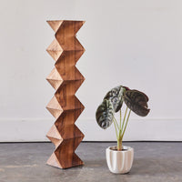 The sculptural works of Aleph Geddis live at the intersection of traditional methods and modernist forms, informed by a lifetime fascination with the foundational structures of our world. Growing up on Orcas Island in the Pacific Northwest, Aleph spent many hours with his stepfather, a sculptor, carver and builder of wooden boats. Steeped in this rich environment, his early works drew inspiration from the stylized naturalism of Northwest coast Native carvings, and later, from all he saw on a family trip to Japan.