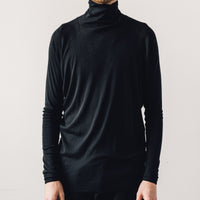 A long sleeve cotton and yak wool-blend turtleneck that's lightweight and well suited for layering. Featuring a small allover rib knit with finished cuffs and hem. Features a raglan sleeve for ease of movement.